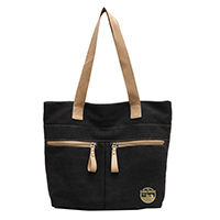 | Zipper Bag | Large Capacity Canvas Bag With Two Front Pockets | Casual Women Canvas Tote Bag |