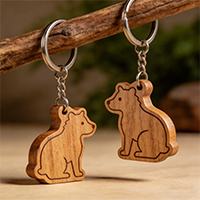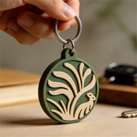 Wooden KeychainsHeat-pressing/embossing imprints logos; laser engraving for details; stitching/assembly adds durability; dyeing/baking adjusts hues. Ideal for elegant luxury leather custom keychains.