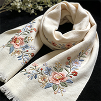 • Embroidery: Elegant/durable for logos/small art; upscale small-batch embroidered luxury custom scarves.