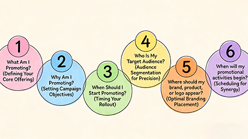 Q: When Will My Promotional Activities Begin? (Scheduling for Synergy) A: Lock in distribution and activation dates: Align with expos, conferences, seasonal peaks, or launches; sequence follow-ups for momentum. A robust timeline harmonizes production, dispersal, and amplification—ensuring promotional event timing strategies amplify exposure and interactions seamlessly.