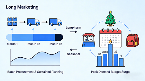 Singular vs. perennial: Perpetuals necessitate phased acquisitions and rolling ledgers; seasonal surges (holidays, expos, back-to-school) spike for peaks, per Improvado's 2025 Marketing Budget Allocation Guide advocating 10-15% contingencies for flux.