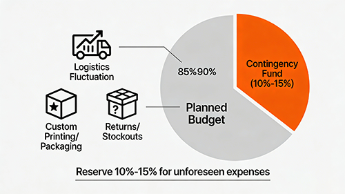 Logistics volatilities, imprint surcharges, or stock hiccups warrant 10-15% cushions—mitigating promotional budgeting contingency planning for unforeseen fiscal flares.