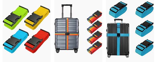 Luggage Straps: Sentinels against scuffs in stacks—bolstering boxes from bumps/frays for intact arrivals. High-contrast hues aid spotting; adjustable lengths fit all. Tailored tints/patterns infuse identity, turning transit into triumphs—custom luggage straps for promotional branding as vibrant voyage accents.